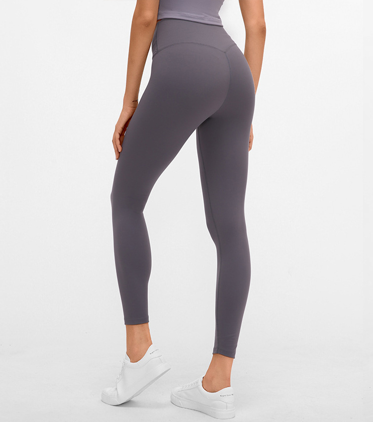 Ce legging à taille haute est fabriqué avec notre nouveau tissu nude développé par &. avec une sensation d'ajustement doux et de haute qualité. Nouvelle finition sans couture sur le devant pour que le pantalon de yoga ait fière allure. c'est un meilleur choix de porter à l'extérieur. Échantillon prêt disponible pour vous permettre de vérifier la qualité et le prix de gros offerts pour la marque privée.